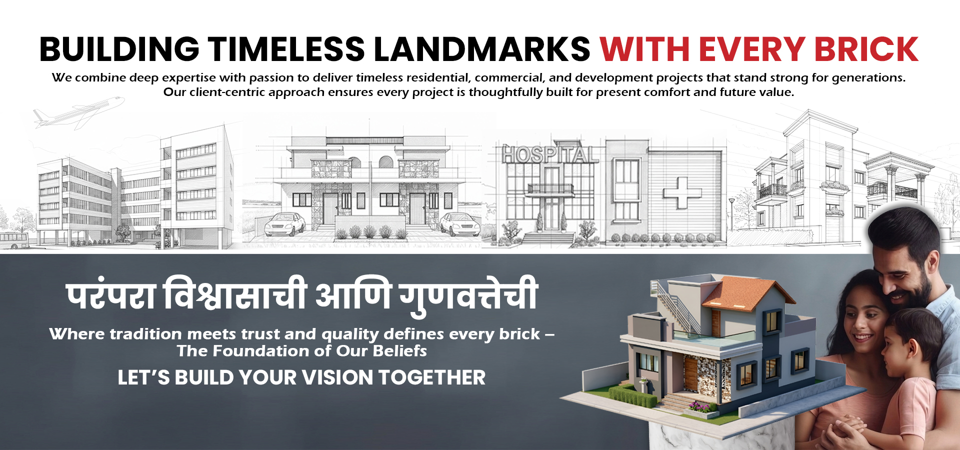 Aakar Group Of Constructions is a leading construction company in Nashik, Maharashtra, offering expert services in residential construction, commercial building projects, and project management consultancy across India. Our journey began in 2017 with a simple belief—to build spaces that people can truly call their own. From our roots in rural Nashik to delivering 150+ successful projects, every structure we create reflects dedication, care, and responsibility. We work closely with our clients and architects to turn their visions into reality.